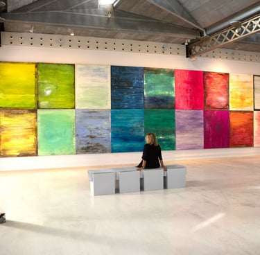El trabajo de Agnès Rodon se desarrolla a través de la indagación en el mundo de la sensaciones. El color, las formas y los soportes que utiliza la artista, se unifican para crear la harmonía artística adecuada para cada obra.